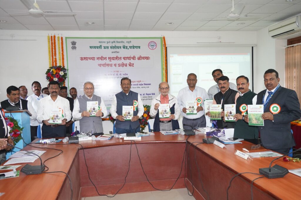 कुलगुरू डॉ. पी.जी. पाटील पुढे म्हणाले की, आपण सध्या हवामान बदलास सामोरे जात आहोत. या हवामान बदलाला तग धरणारे असे ऊसाचे वाण फुले ऊस 15012, फुले ऊस 13007 व फुले ऊस 15006 वाण या संशोधन केंद्राने विकसित केले आहेत. हे वाण जास्तीत जास्त ऊस उत्पादक शेतकर्‍यांपर्यंत जाण्यासाठी साखर कारखान्यांचे ऊस विकास अधिकारी, मुख्य शेतकी अधिकारी यांनी प्रयत्न करावेत असे आवाहन त्यांनी यावेळी केले. याप्रसंगी श्री. अजित चौगुले म्हणाले की, या ऊस संशोधन केंद्राने ऊसावर केलेल्या संशोधनाचा आम्हा सर्वांना सार्थ अभिमान आहे. या संशोधन केंद्राचे बळकटीकरण करण्यासाठी सर्व कारखान्यांनी पुढाकार घेण्याची गरज आहे. डॉ. राजेंद्र सरकाळे आपले मनोगत व्यक्त करताना म्हणाले की, सहकारी बँक व साखर कारखाने यांनी सहकाराचे नाते जपल्यामुळे ऊस उत्पादक शेतकर्‍यांचा फायदा झालेला आहे. ऊसामध्ये भविष्यात क्रांती होण्याची अपेक्षा पाडेगाव येथील ऊस संशोधन केंद्रामध्ये होत असलेल्या संशोधनातून दिसत आहे. याप्रसंगी डॉ. विठ्ठल शिर्के म्हणाले की फुले 0265 आणि को 86032 या वाणांना समतुल्य वाण फुले ऊस 15012, फुले ऊस 13007 व फुले ऊस 15006 या संशोधन केंद्राने प्रसारीत केले आहे. हे वाण जास्तीत जास्त शेतकर्‍यांपर्यंत जाण्यासाठी या कार्यक्रमाचे आयोजन केले आहे. यावेळी मान्यवरांच्या हस्ते आधुनिक ऊस उत्पादन तंत्रज्ञान या पुस्तिकेचे आणि ऊस तंत्रज्ञानावर आधारीत दहा घडीपित्रीकेंचे विमोचन करण्यात आले.