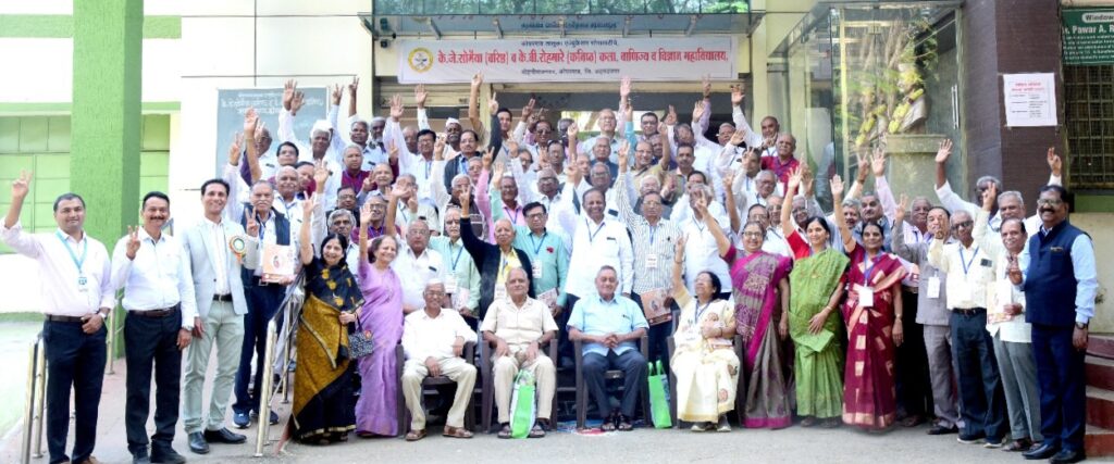कोपरगाव प्रतिनिधी :-कोपरगाव तालुका एज्युकेशन सोसायटीचे के.जे.सोमय्या (वरिष्ठ) व के.बी.रोहमारे (कनिष्ठ) कला, वाणिज्य व विज्ञान महाविद्यालयाच्या १९६८-६९ ते १९७१-७२ या बॅचच्या माजी विद्यार्थ्यांचा स्नेह मेळावा महाविद्यालयाच्या साकरबेन सभागृहात कोपरगाव तालुका एज्युकेशन सोसायटीचे अध्यक्ष अशोकराव रोहमारे यांच्या अध्यक्षतेखाली आणि महाराष्ट्र राज्य सहकारी पतसंस्था फेडरेशन अध्यक्ष ओमप्रकाश दादाप्पा तथा काका कोयटे, कोपरगाव तालुका एज्युकेशन सोसायटी सचिव संजीव कुलकर्णी, कार्यकारी विश्वस्त संदीप रोहमारे, माजी विद्यार्थी संघाचे अध्यक्ष सुधीर डागा, १९६८-६९ ते १९७१-७२ या बॅचचे शिक्षक सुधाकर गणोरकर, एन. एम. जोशी, अविनाश घैसास आदींच्या प्रमुख उपस्थितीत उत्साहात संपन्न झाला.