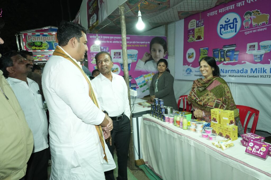 फोटो ओळ- बचत गटाच्या स्टॉल धारकांशी संवाद साधतांना आ. आशुतोष काळे.