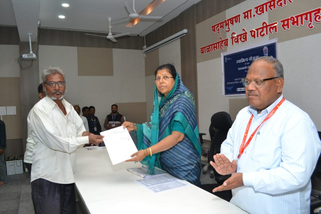 जिल्हा परिषदेच्या माजी अध्यक्षा शालिनी विखे पाटील यांच्याहस्ते प्रातिनिधिक स्वरूपात १० लाभार्थ्यांना मिळकतकार्डचे वाटप करण्यात आले. याप्रसंगी गटविकास अधिकारी भाऊसाहेब अहिरे, भूमी अभिलेख विभागाचे उपअधीक्षक योगेश थोरात आदी उपस्थित होते.