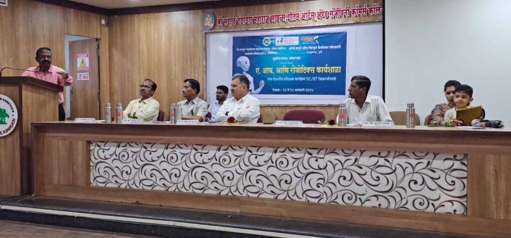 रयत शिक्षण संस्थेचे श्री सदगुरु गंगागीर महाराज महविद्यालय, कोपरगांव, दि बाॅम्बे मदर्स अॅन्ड चिल्ड्रेन वेल्फेअर सोसायटी, राजगुरुनगर, सूर्यतेज संस्था, कोपरगांव यांचे वतीने उच्च माध्यमिक शिक्षण घेणा-या अनुसुचित जाती आणि अनुसुचित जमाती चे विद्यार्थी आणि विद्यार्थीनी यांचेसाठी ए. आय. आणि रोबोटिक या विषयावर तीन दिवसीय विशेष प्रशिक्षणाचे आयोजन कोपरगांव येथील श्री सदगुरु गंगागीर महाराज महविद्यालयात करण्यात आले होते.