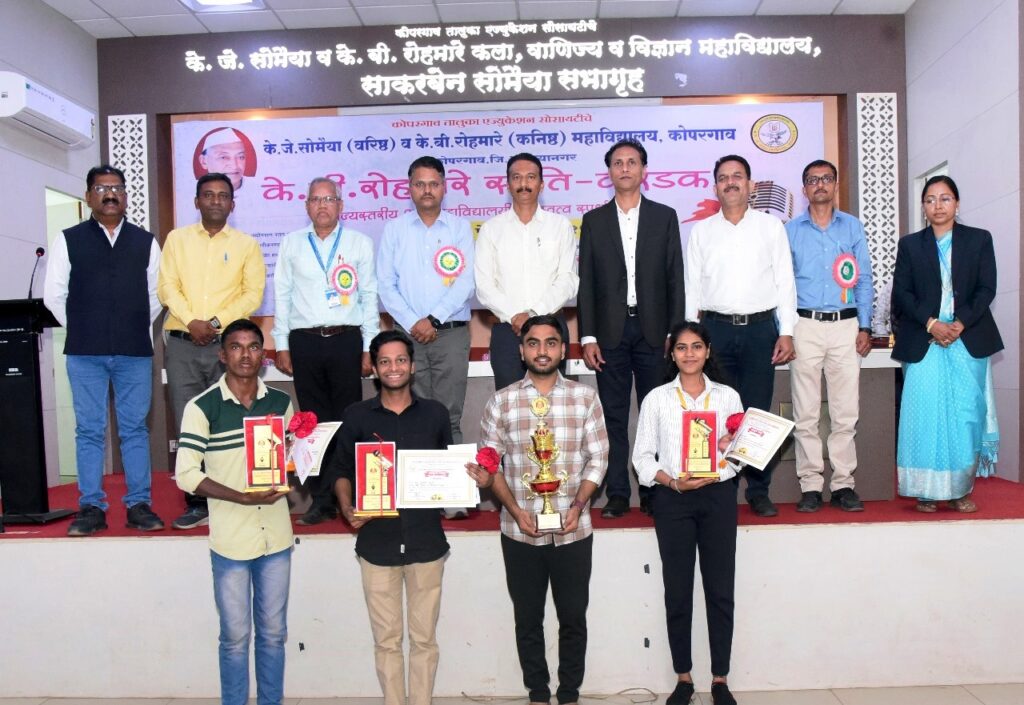 या स्पर्धेतील मानाचा के. बी. रोहमारे स्मृति-करंडक (सांघिक प्रथम क्रमांक) रोख रुपये २१००/- व सन्मानचिन्ह न्यू आर्ट्स, कॉमर्स अँड सायन्स कॉलेज अहिल्यानगरच्या आकाश दत्तात्रय मोहिते व महेश जनार्दन उशीर यांनी सर्वाधिक गुण मिळवून रूपये २१००/ व सन्मान चिन्हासह पटकावला. वैयक्तिक प्रथम क्रमांक रूपये ९०००/ अभय आळशी (वझे महाविद्यालय, मुंबई), वैयक्तिक व्दितीय क्रमांक रूपये ७०००/ आकाश मोहिते (न्यू आर्ट्स कॉमर्स अँड सायन्स महाविद्यालय अहिल्यानगर), वैयक्तिक तृतीय क्रमांक रूपये ५०००/ मेघा सोनवणे (के. जे. सोमैया महाविद्यालय कोपरगाव) यांनी तर उत्तेजनार्थ पारितोषिक प्रत्येकी रूपये १०००/ निखिल बोडखे ( न्यू आर्टस्, कॉमर्स अँड सायन्स कॉलेज, शेवगाव), महेश उशीर (न्यू आर्टस्, कॉमर्स अँड सायन्स कॉलेज, अहिल्यानगर) व रु. ५०१/- चे विशेष पारितोषिक वैष्णवी आंबेकर (सिन्नर महाविद्यालय)यांनी पटकावले.
