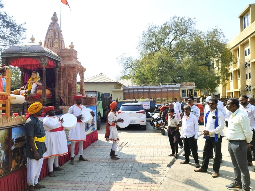 पुण्यश्लोक अहिल्यादेवी होळकर यांच्या चित्ररथाचे कोपरगावात स्वागत तहसिलदार महेश सावंत यांचेसह स्थानिक नागरिकांचे वतीने करण्यात आले.