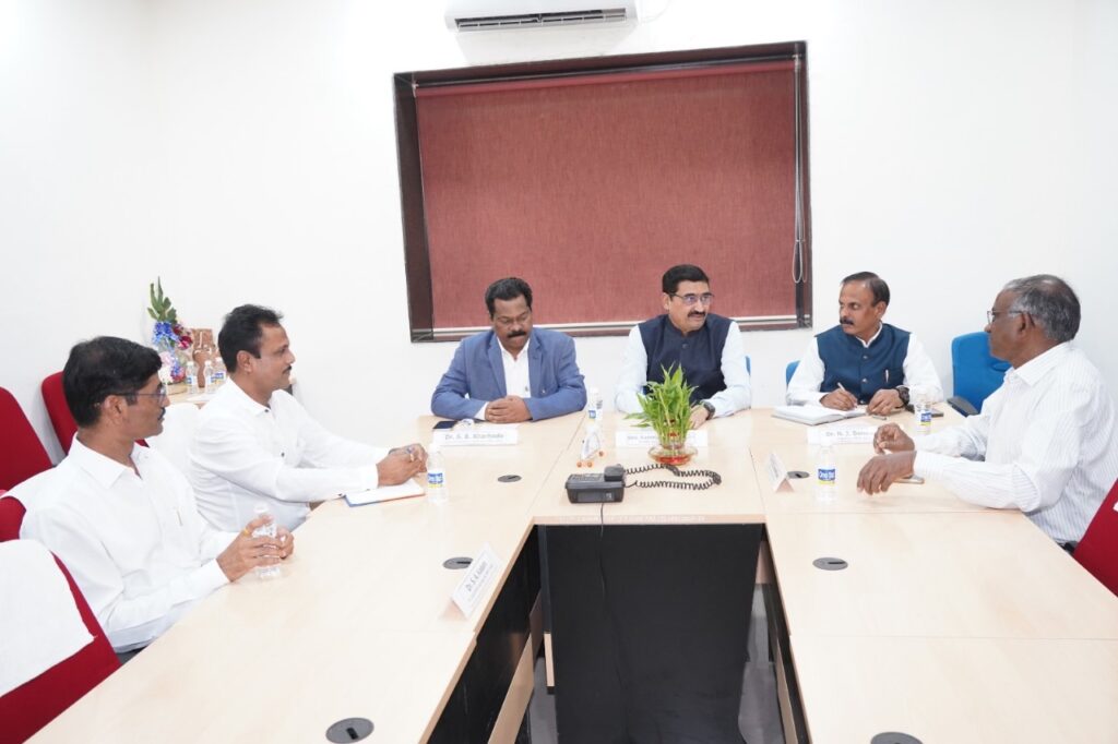 महात्मा फुले कृषि विद्यापीठ, राहुरी येथील काटेकर शेतीसाठी डिजिटल तंत्रज्ञानावर आधारित सेंटर ऑफ एक्सलन्स प्रकल्पाला भेट दिल्यानंतर श्री. रावसाहेब भागडे बोलत होते. यावेळी महात्मा फुले कृषि विद्यापीठाचे प्रभारी कुलगुरु डॉ. साताप्पा खरबडे, कृषि परिषदेचे संशोधन संचालक डॉ. किशोर शिंदे, माजी संशोधन संचालक डॉ. सुनील गोरंटीवार, कुलसचिव डॉ. नितीन दानवले व कृषि अभियांत्रिकी विभागाचे प्रमुख तथा काटेकर शेतीसाठी डिजिटल तंत्रज्ञानावर आधारित सेंटर ऑफ एक्सलन्स प्रमुख संशोधक डॉ. सुनील कदम उपस्थित होते.