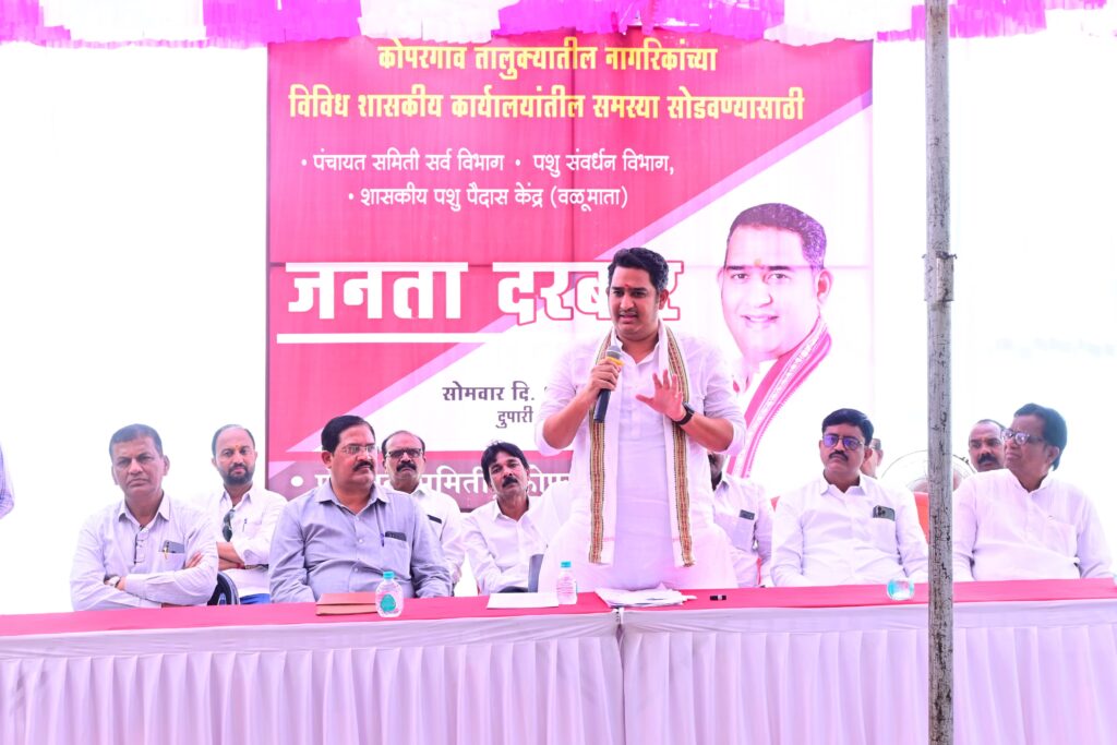 एकत्रित जनता दरबारात ग्रामीण भागातील नागरिकांना आपल्या समस्या मांडण्यासाठी पुरेसा वेळ मिळत नसल्यामुळे पंचायत समिती (सर्व विभाग), पशु संवर्धन विभाग व शासकीय पशु पैदास केंद्र (वळूमाता) ह्या विभागातील नागरिकांच्या अडचणी दूर करण्यासाठी आ.आशुतोष काळे यांनी प्रथमच पंचायत समिती कार्यालयात जनता दरबार घेतला.याप्रसंगी मतदार संघातील अनेक गावातील नागरीकांनी ग्रामसेवकांबद्दल आपल्या तक्रारी मांडल्या.त्यावेळी त्या तक्रारी सविस्तरपणे जाणून घेवून त्याबाबत संबंधित ग्रामसेवकाकडून माहिती घेतली असता समाधानकारक उत्तरे न मिळाल्यामुळे ऐरवी शांत असलेल्या आ.आशुतोष काळे यांनी जनता दरबारात मोठ्या संख्येने उपस्थित असलेल्या मतदार संघातील जनतेच्या समक्ष कामचुकार अधिकाऱ्यांची चांगलीच खरडपट्टी काढली. संबंधित प्रश्नांचे जाब त्या त्या अधिकाऱ्यांना विचारून तिथेच त्या प्रश्नाला पूर्णविराम देवून त्यांनी जागेवरच नागरीकांचे प्रश्न मिटवले.