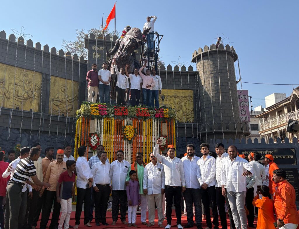 कोळपेवाडी वार्ताहर – कोपरगांव शहरासह संपूर्ण मतदारसंघात आ.आशुतोष काळे यांच्या मार्गदर्शनाखाली राष्ट्रवादी काँग्रेस पक्षाच्या वतीने अखंड हिंदुस्थांनाचे आराध्य दैवत श्री छत्रपती शिवाजी महाराजांची जयंती बुधवार (दि.१९) रोजी मोठ्या उत्साहात साजरी करण्यात आली.यावेळी कोपरगाव शहरातील श्री छत्रपती शिवाजी महाराज यांच्या स्मारकातील छत्रपती शिवाजी महाराजांच्या अश्वारूढ पुतळ्यास कोपरगाव तालुका राष्ट्रवादी काँग्रेस पक्षाच्या पदाधिकाऱ्यांनी पुष्पहार अर्पण करून अभिवादन करण्यात आले.