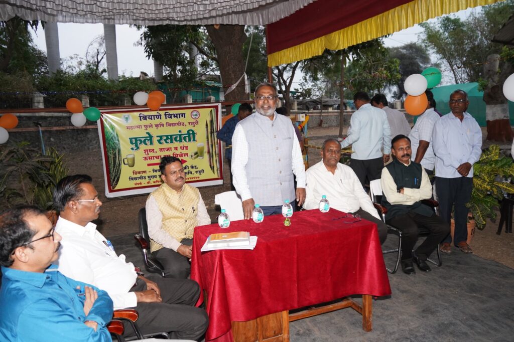 महात्मा फुले कृषि विद्यापीठातील बियाणे विभागाने नव्याने सुरू केलेल्या रसवंतीगृह व नर्सरीचे उद्घाटनप्रसंगी कुलगुरू डॉ. शरद गडाख बोलत होते. याप्रसंगी विद्यापीठाचे संचालक संशोधन डॉ. विठ्ठल शिर्के, संचालक विस्तार शिक्षण डॉ. गोरक्ष ससाणे, कुलसचिव तथा प्रमुख शास्त्रज्ञ बियाणे डॉ. नितीन दानवले, नियंत्रक तथा उद्यानविद्या विभाग प्रमुख डॉ. भरत पाटील व कुलगुरूंचे तांत्रिक अधिकारी डॉ. पवन कुलवाल उपस्थित होते.