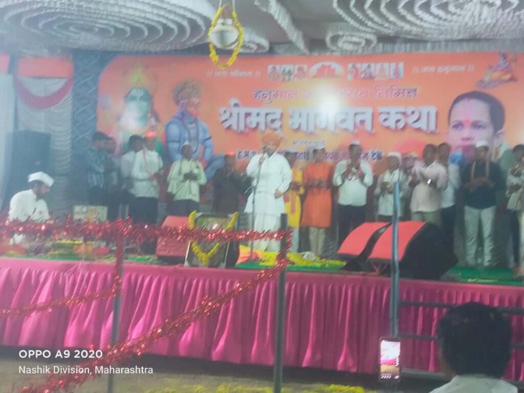 कोपरगाव प्रतिनिधी:- तालुक्यातील वारी येथे हनुमान जन्मोत्सव निमित्ताने येथील खोलवाट मित्र मंडळ वारी आणि वारी ग्रामस्थ यांच्या वतीने सात दिवसीय संगीतमय भागवत कथेचे आयोजन करण्यात आले होते याप्रसंगी प्रसिद्ध भागवताचार्य ह भ प सौ सुरेखाताई टेकेमहाराज यांच्या सुश्राव्य वाणीतून हजारो भाविकांनी संगीतमय कथा श्रवनाचा लाभ घेतला त्यांना गायनाचार्य ह भ प बाबासाहेब महाराज शिंदे,ह भ प विनायक महाराज टेके,ह भ प आस्तिक महाराज टेके , मृदुंगाचार्य ह भ प शंकरमहाराज गोंडे ,अँक्टोपॅड साथ यश भड यांनी मोलाची साथ दिली या कार्यक्रमात नाचत फुगड्या खेळत उपस्थित भाविकांनी व उपस्थित महिलांनी कथेचा आनंद घेतला