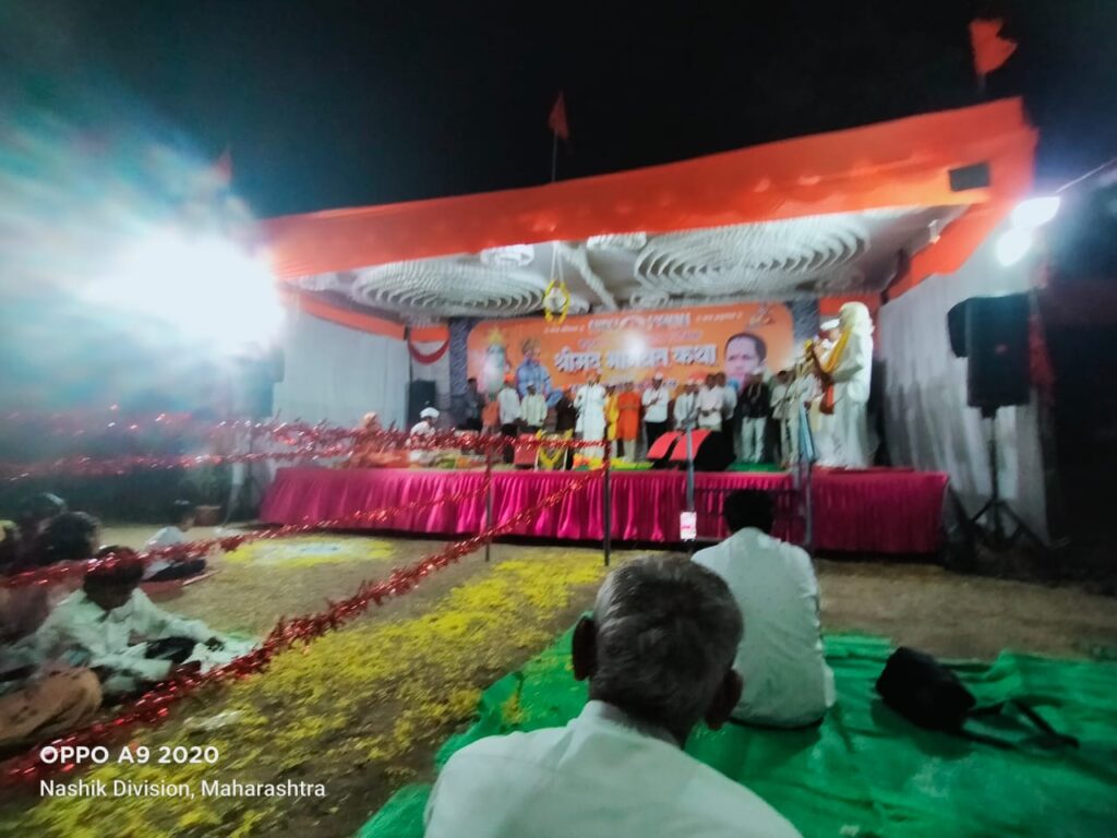कथा सांगता निमित्ताने समाज प्रबोधनकार प्रसिद्ध रामयनाचार्य ह भ प परशुराम महाराज अनर्थे यांचे सुश्राव्य वाणीतून त्यांच्या विनोदी शैलीत काल्याचे मंत्रमुग्ध करणारे किर्तन झाले