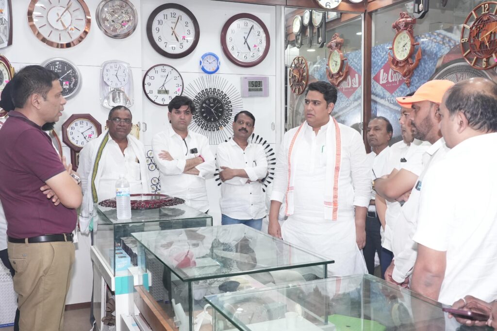 फोटो ओळ-आ.आशुतोष काळे यांनी चोरीची घटना घडलेल्या सचिन वॉच कंपनीचे दुकान मालक लोहाडे बंधू यांची भेट घेवून माहिती घेत पोलिसांना सूचना केल्या.