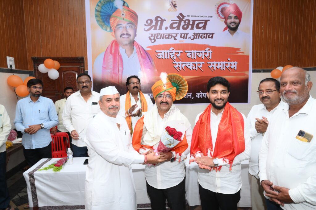 मित्र फाऊंडेशनचे संस्थापक वैभव आढाव यांची भारतीय जनता पार्टी कोपरगाव शहराध्यक्ष पदी निवड झाल्याच्या अनुषंगाने, मित्र फाऊंडेशन आणि वैभव आढाव मित्र परिवार यांच्या वतीने भव्य जाहीर नागरी सत्कार समारंभ रविवार, ४ मे २०२५ रोजी व्यापारी धर्मशाळा, कोपरगाव येथे संपन्न झाला.