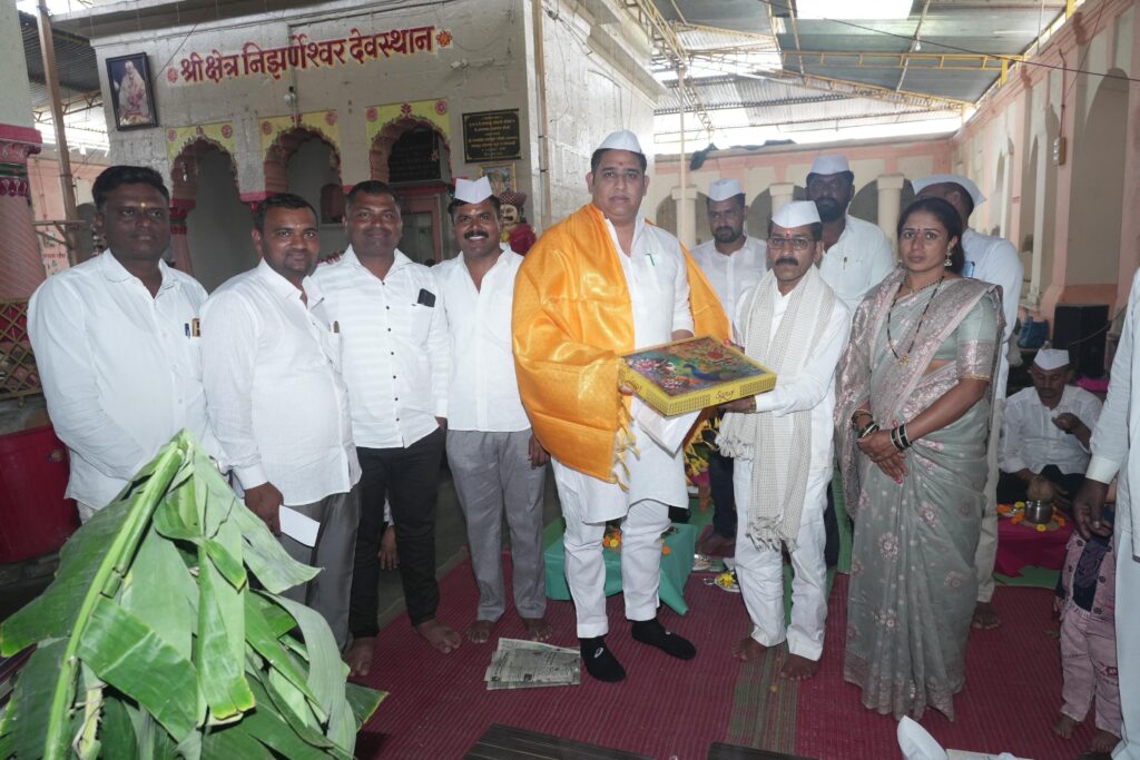 आ. आशुतोष काळे यांनी केलेल्या विकास कामांच्या जोरावर मतदार संघातील जनतेने २०२४ च्या विधानसभा निवडणुकीत त्यांना ऐतिहासिक मताधिक्य देत तब्बल सव्वा लाखाच्या मतांनी पुन्हा आमदार केले. त्यामुळे आपण केलेला नवस पूर्ण झाल्यानंतर जवळपास आठ महिन्यांपासून अनवाणी पायांनी चालणाऱ्या मधुकर गुंजाळ यांनी श्री निझर्णेश्वराला आ. आशुतोष काळे यांच्या उपस्थितीत सपत्नीक पत्नी सौ. संगीता गुंजाळ यांच्या समवेत रुद्राभिषेक करुन व ५१ जोडप्यांच्या हस्ते सत्यनारायण पूजा करुन पायात चप्पल परिधान केली.