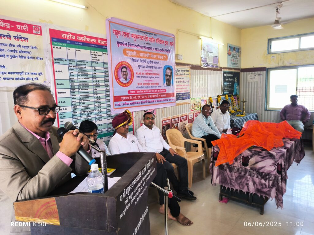 कोपरगाव तालुक्यातील वारी येथील राहुल दादा मधुकरराव टेके पाटील चॅरिटेबल ट्रस्टच्यावतीने वारी पंचक्रोशीतील दहावी-बारावीतील उत्तीर्ण झालेल्या विद्यार्थ्यांसाठी शुक्रवारी (दि.6) “दहावी-बारावी नंतर काय ?” या अनुषंगाने करियर मार्गदर्शन शिबिर तसेच विद्यार्थ्यांचा सन्मान सोहळा आयोजित करण्यात आला होता. यावेळी प्रमुख मार्गदर्शन म्हणून प्रा. साहेबराव दवंगे बोलत होते. प्रमुख अतिथी म्हणून कोपरगाव पंचायत समितीचे गटशिक्षणाधिकारी बाळासाहेब साबळे उपस्थित होते. कार्यक्रमाचे अध्यक्षस्थानी वारी गावचे माजी उपसरपंच सामाजिक कार्यकर्ते रामदास सोनवणे होते. कार्यक्रमाची राहुल दादा टेके यांच्यासह महापुरुषांच्या प्रतिमांचे पूजन व दीप प्रज्वलन करून सुरुवात करण्यात आली.