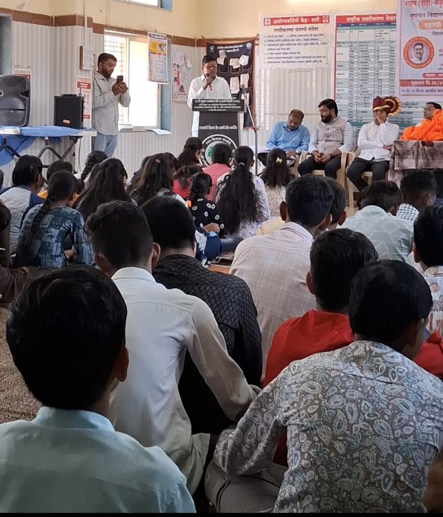 बाळासाहेब साबळे म्हणाले, आता दहावी-बारावीची निकालानंतर प्रवेश प्रक्रिया सुरू झालेली आहे. या प्रक्रियेमध्ये प्रशासनाच्यावतीने जी काही मदत लागेल त्यासाठी सर्वतोपरी मदत करण्यात येईल. यावेळी डॉ. सर्जेराव टेके, जितेंद्र टेके व प्रा. गिरीश काशीद यांनी विद्यार्थ्यांनी खचून न जाता येईल त्या परिस्थितीला सामोरे जात यशस्वी होण्याचे आवाहन केले. अध्यक्षीय भाषणात रामदासजी सोनवणे म्हणाले, शिक्षण हा जीवनातील अत्यंत महत्त्वाचा घटक आहे. त्यातून देशाची योग्य संस्कारक्षम व ध्येयवादी विचारांची पिढी निर्माण होत असते. त्यामुळे अशा प्रकारचे शिबिर ग्रामीण भागात सुरू झाले ही निश्चितच कौतुकाची बाब आहे. पुढील काळात याही भागातून मोठे अधिकारी निर्माण होतील यात शंका नाही. कार्यक्रमाच्या प्रास्ताविकात टेके पाटील ट्रस्टचे अध्यक्ष पत्रकार रोहित टेके यांनी या शिबिराविषयी महत्त्व पटवून देत ट्रस्टच्या कार्याचा आढावा घेतला. यावेळी दहावी-बारावी सह, पाचवी आठवी शिष्यवृत्ती, मंथन परीक्षा, गांधी रिसर्च फाऊंडेशन विविध परीक्षांमध्ये, क्रीडा क्षेत्रात, महाज्योती अंतर्गत मोबाईल टॅब मिळवत प्रावीण्य मिळवलेल्या शंभरपेक्षा जास्त विद्यार्थ्यांचा शाल, गुलाब पुष्प व पेन देऊन सन्मान करण्यात आला. तसेच ट्रस्टच्या मार्गदर्शक स्मिता काबरा यांच्या वतीने उपस्थित विद्यार्थ्यांना खाऊचे वाटप करण्यात आले.