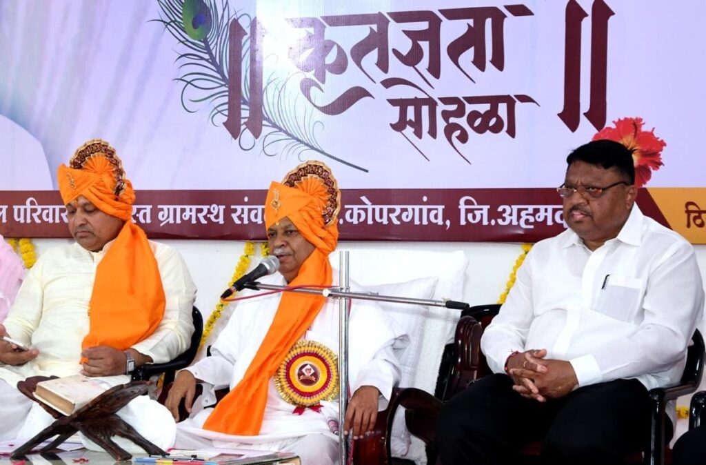 गोदावरी खोरे नामदेवरावजी परजणे पाटील तालुका सहकारी दूध उत्पादक संघाचे संस्थापक दिवंगत नेते नामदेवराव परजणे पाटील (आण्णा) यांच्या २१ व्या पुण्यस्मरण सोहळ्यानिमित्त संवत्सर येथे आयोजित करण्यात आलेल्या प्रवचनातून ” योग, उद्योग व देव ” या विषयावर ह. भ. प. वाडेकर महाराज बोलत होते. ज्येष्ठ किर्तनकार ह. भ. प. उध्दवजी महाराज मंडलिक यांच्या अध्यक्षतेखाली झालेल्या या सोहळ्यासाठी व्यासपीठावर संवत्सर महानुभाव आश्रमाचे प. पू. नितीनबाबा महानुभाव, पाथरे आश्रमाचे प. पू. दामोदर बाबा महानुभाव, महाराष्ट्र राज्य सहकारी दूध महासंघाचे माजी उपाध्यक्ष राजेंद्र जाधव, माजी संचालक प्रमोदबापू पाटील, माजी नगराध्यक्ष मंगेश पाटील, अरुणराव येवले, माजी जिल्हा परिषद सदस्य महेंद्र काले, सौ. धनश्री विखे पाटील, मच्छिंद्र टेके यांची प्रमुख उपस्थिती होती. प्रारंभी स्व. नामदेवराव परजणे आण्णा यांच्या प्रतिमेचे पूजन करण्यात आले. तर गोदावरी खोरे सहकारी दूध संघाचे अध्यक्ष राजेश परजणे पाटील यांनी स्वागत व प्रास्तविक केले. संवत्सर ग्रामस्थांच्यावतीने ह. भ. प. वाडेकर महाराज, प. पू. उध्दव महाराज मंडलीक यांच्यासह उपस्थित मान्यवरांचासत्कार करण्यात आला.