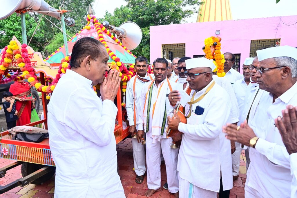 कोळपेवाडी वार्ताहर :- मा.खा.स्व.कर्मवीर शंकररावजी काळे व स्व.सौ.सुशीलामाई काळे यांच्या कृपा आशीर्वादाने मा.आ.अशोकराव काळे व आ.आशुतोष काळे यांच्या प्रेरणेतून मागील वर्षापासून श्री क्षेत्र माहेगाव देशमुख ते श्री क्षेत्र पंढरपूर पायी दिंडी सोहळ्याचे आयोजन करण्यात आले आहे. मागीलवर्षी प्रमाणे याहीवर्षी मोठ्या उत्साहात या दिंडीचे पंढरपूरकडे प्रस्थान झाले. यावेळी मा.आ.अशोकराव काळे यांनी विधिवत श्री गुरुदत्त महाराजांचे परमभक्त असलेल्या गवळीराम बाबांच्या पालखीचे पूजन करून पंढरपूरकडे निघालेल्या वारकऱ्यांना शुभेच्छा दिल्या.