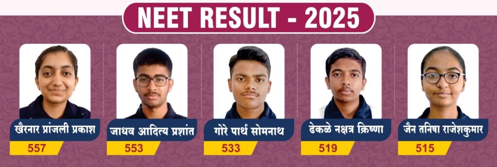 कोपरगाव प्रतिनिधी:- वैद्यकिय पदवी अभ्यासक्रमाच्या प्रवेशासाठी नॅशनल टेस्टिंग एजन्सीच्या वतीने दिनांक ०४ मे २०२५ रोजी नीटची परीक्षा घेण्यात आलेली होती. सदर परीक्षेचा निकाल नुकताच जाहिर झालेला असून या परीक्षेत आत्मा मालिक ज्युनिअर कॉलेजची विद्यार्थींनी कु.खैरनार प्रांजली प्रकाश ७२० पैकी ५५७ गुण मिळवून कॉलेजमध्ये प्रथम येण्याचा मान पटकाविला. जाधव आदित्य प्रशांत ५५३, गोरे पार्थ सोमनाथ ५३३, ढेकळे नक्षत्र ५१९, कु. जैन तनिषा ५१५, चौधरी पियुष ४६०, मंचरे रोहन ४४९, कु.आमले समृद्धी ४४५,या विद्यार्थ्यांनी घवघवीत यश मिळवले यावेळी विश्वात्मक जंगली महाराज आश्रम ट्रस्टचे अध्यक्ष नंदकुमार सुर्यवंशी म्हटले की, शैक्षणिक वर्ष 2017-18 पासून नीट व जेईई या परीक्षांची तयारी आकाश कोचिंग इंन्स्ट्यिूट च्या माध्यमातून करुन घेतली जाते. विद्यार्थ्यांना कॉलेज, क्लासेस, निवास व भोजनव्यवस्था एकाच छताखाली मिळत असल्याने विद्यार्थ्यांना स्वयंअध्ययानास वेळ मिळतो. आतापर्यंत एमबीबीएस साठी ३५, बीडीएस साठी २३ तर पशुवैद्यकिय साठी 15 विद्यार्थ्यांची शासकीय महाविद्यालयामध्ये निवड झालेली आहे. यशस्वी विद्यार्थ्यांचे आश्रमाचे अध्यक्ष नंदकुमार सुर्यवंशी,उपाध्यक्ष बाळासाहेब गोर्डे, सरचिटणीस हनुमंतराव भोंगळे, कोष्याध्यक्ष विठ्ठलराव होन, विश्वस्त प्रकाश गिरमे,प्रदीपकुमार भंडारी, शालेय व्यवस्थापक सुधाकर मलिक,वसतिगृह व्यवस्थापक साईनाथ वर्पे,मीरा पटेल, प्राचार्य नामदेव डांगे सर व शिक्षकांनी अभिनंदन केले.
