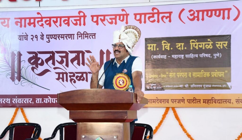 गोदावरी खोरे नामदेवरावजी परजणे पाटील तालुका सहकारी दूध उत्पादक संघाचे संस्थापक दिवंगत नेते नामदेवराव परजणे पाटील (आण्णा) यांच्या २१ व्या पुण्यस्मरण सोहळ्यानिमित्त संवत्सर येथे आयोजित करण्यात आलेल्या व्याख्यानातून ” संत परंपरा व सामाजिक प्रबोधन..” या विषयावर श्री पिंगळे सर बोलत होते. पुणे येथील शिक्षणतज्ज अनिलराव गुंजाळ कार्यक्रमाच्या अध्यक्षस्थानी होते. प्रारंभी स्व. नामदेवराव परजणे आण्णा यांच्या प्रतिमेचे पूजन करण्यात आले. तर गोदावरी खोरे सहकारी दूध संघाचे अध्यक्ष राजेश परजणे पाटील यांनी स्वागत व प्रास्तविक केले. संवत्सर ग्रामस्थांच्यावतीने श्री पिंगळे सर व श्री गुंजाळ सर यांचा सत्कार करण्यात आला.