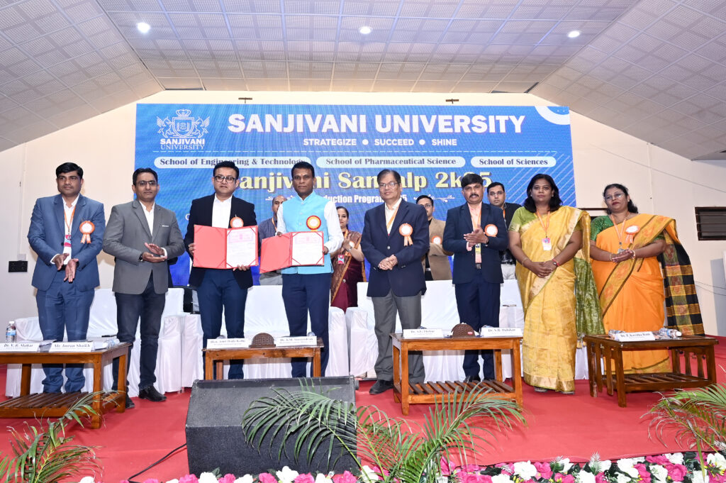 संजीवनी युनिव्हर्सिटी संचलित स्कूल ऑफ कॉमर्स अँड मॅनेजमेंट, स्कूल ऑफ सायन्सेस व स्कूल ऑफ फार्मास्युटिकल सायन्सेस मध्ये नव्याने प्रवेश घेतलेले विद्यार्थी व त्यांच्या पालकांच्या स्वागत समारंभात डॉ. सुचींद्रन प्रमुख पाहुणे म्हणुन विद्यार्थ्यांना मार्गदर्शन करताना बोलत होते. यावेळी संजीवनी युनिव्हर्सिटीचे प्रेसिडेंट श्री अमित कोल्हे यांनी स्वागत समारंभाचे अध्यक्षस्थान भुषविले. सदर प्रसंगी व्हाईस चांसलर डॉ.ए. जी. ठाकुर, व्हाईस प्रेसिडेंट-कार्पोरेट रिलेशन्स इम्राण शेख, डीन्स डॉ. कविथा राणी, डॉ. विनोद मालकर, डॉ. समाधान दहिकर, डॉ. सरीता पवार, रजिस्ट्रार प्रा. अमोल ढाकणे, विभाग प्रमुख व्यासपीठावर उपस्थित होते. यावेळी संजीवनी युनिव्हर्सिटी व टीसीएस कंपनीमध्ये झालेल्या परस्पर सामंजस्य कराराचे दस्तावेज परस्परांना हस्तांतरीत करण्यात आले.