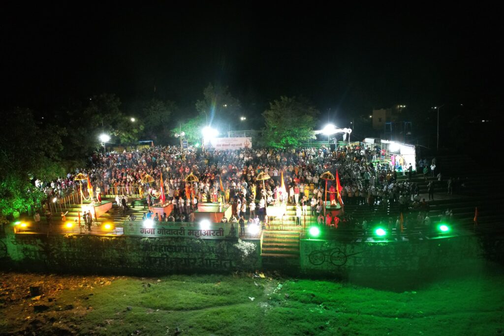 या प्रसंगी बिपीनदादा कोल्हे, रेणुकाताई विवेक कोल्हे, तसेच अहमदाबाद येथून आलेले साई मंदिर ट्रस्टचे विश्वस्त ॲड. बालकृष्णभाई, गिरीशभाई, अहमदभाई, घनशामभाई यांच्यासह हजारो भाविक उपस्थित होते. कोपरगाव नगरपरिषद, पोलिस प्रशासन व पत्रकार बांधव यांचे सहकार्य या उपक्रमास मोलाचे लाभले. कोपरगावच्या गंगा-गोदावरी घाटावर हजारो नागरिकांच्या उपस्थितीत पार पडलेली ही आरती केवळ धार्मिक उत्सव नव्हता, तर श्रद्धा, संस्कृती व सामाजिक बांधिलकीचे दर्शन घडवणारा अनुपम सोहळा ठरला.
