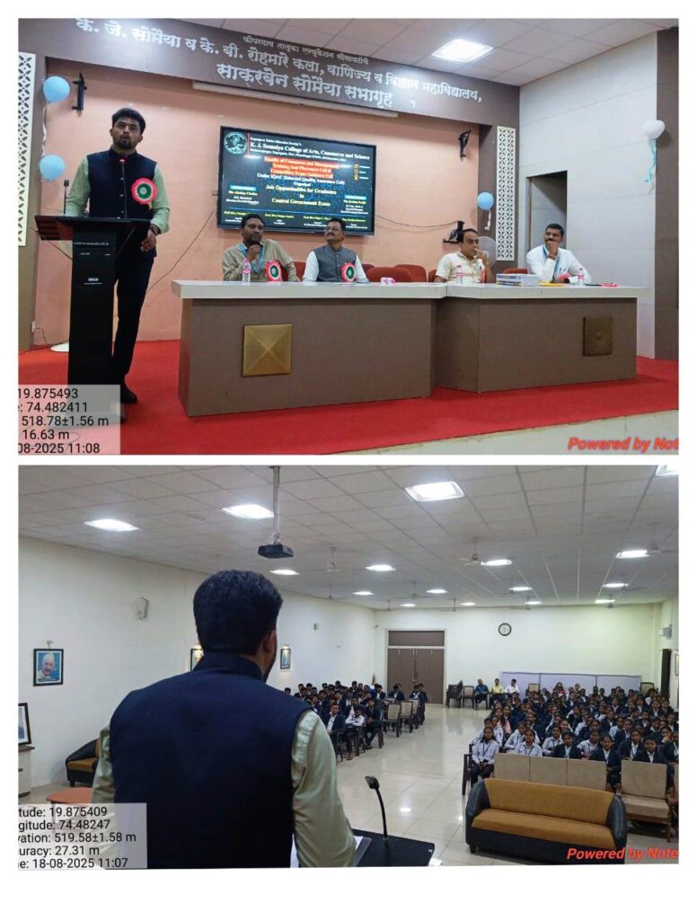 “विविध सरकारी नोकऱ्या मिळवण्यासाठी विद्यार्थ्यांनी तत्पर असावे. सरकारी नोकरी मिळवण्यासाठी आयबीपीएस एक्झाम सारखी दुसरी सोपी व पारदर्शक पद्धती नाही. अभ्यासातील सातत्य व योग्य मार्गदर्शन हे आयबीपीएस परीक्षा उत्तीर्ण होण्याचे अचूक समीकरण आहे. मैदानावर शारीरिक कसरत व मोबाईलचा योग्य व कमी वापर हे तुमच्या यशाचे गमक ठरू शकते.” असे प्रतिपादन संभाजीनगर येथील सारथी एज्यूकेशनचे संचालक मा. अक्षय चोळके यांनी येथे केले. स्थानिक के. जे. सोमैया कला, वाणिज्य व विज्ञान महाविद्यालय कोपरगावच्या स्पर्धा परीक्षा मार्गदर्शन केंद्र, वाणिज्य शाखा, विद्यार्थी मार्गदर्शन योजना व ट्रेनिंग अँड प्लेसमेंट सेलच्या वतीने आयबीपीएस बँकिंग कार्यशाळा आयोजित करण्यात आली होती त्या वेळी ते बोलत होते. यशस्वरित्या संपन्न झाली.