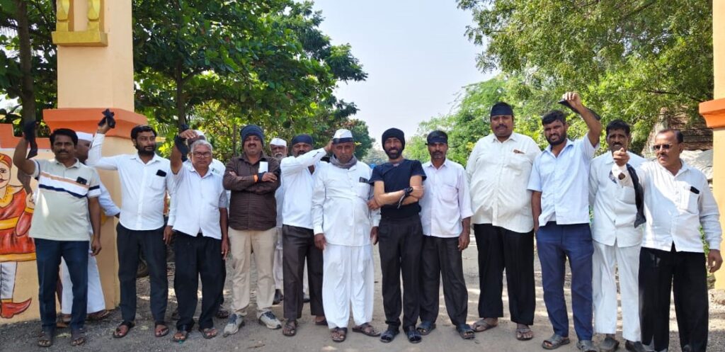 फोटो ओळ-मा.आ.कोल्हे यांना काळे झेंडे दाखवतांना सोनारी ग्रामस्थ.