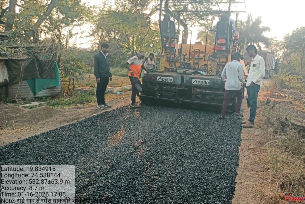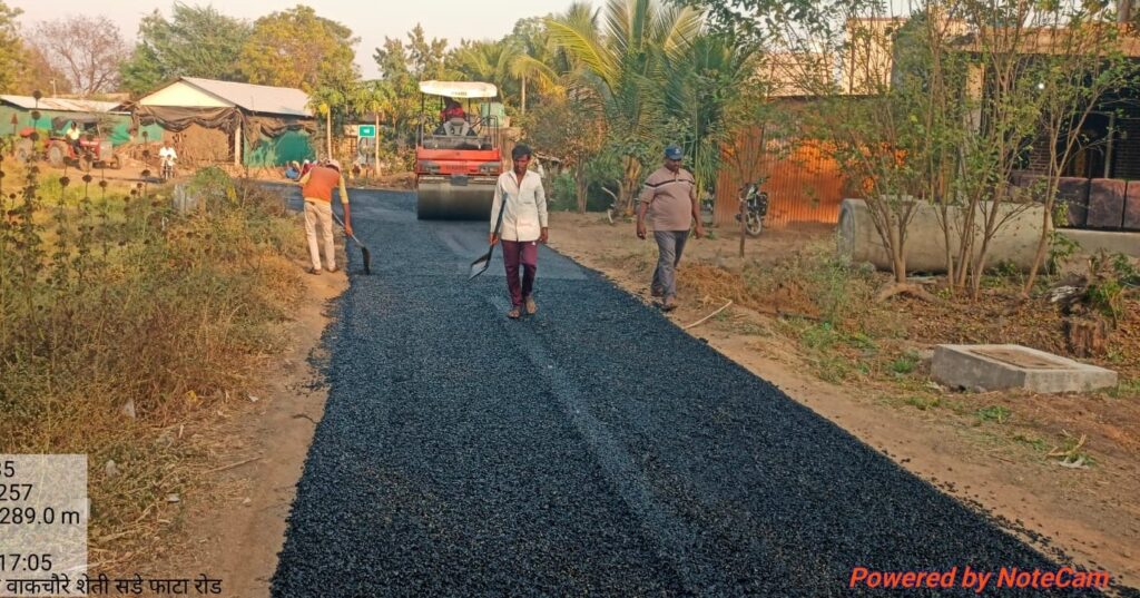 फोटो ओळ- सडे गाव ते सडे फाटा या एक कि.मी. रस्त्याचे पहिल्या टप्प्यातील डांबरीकरणाचे काम पूर्ण झाले.