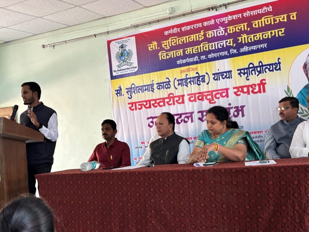 सौ.सुशीलामाई काळे कला, वाणिज्य व विज्ञान महाविद्यालयात राज्यस्तरीय वक्तृत्व स्पर्धेचे आयोजन करण्यात येवून वकृत्व स्पर्धेतील विजेत्यांना पारितोषिक वितरण करण्यात आले यावेळी कार्यक्रमाच्या अध्यक्षस्थानी प्राचार्या डॉ. सौ. विजया गुरसळ होत्या.याप्रसंगी कर्मवीर शंकरराव काळे एज्युकेशन सोसायटीचे इन्स्पेक्टर प्रा.नारायण बारे यांनी स्वर्गीय सौ. सुशीलामाई काळे यांच्या कार्याला उजाळा दिला. ते म्हणाले की,शिक्षण हीच प्रगतीची खरी ताकद आहे, या विचारावर ठाम विश्वास ठेवत स्व.सौ. सुशीलामाई काळे यांनी शाळा उभारणीसाठी कर्मवीर शंकररावजी काळे यांच्याकडे आग्रह धरला.मुलगी शिकली तर दोन घरांना सुशिक्षित करते या भावनेतून त्यांनी तालुक्यातील अनेक मुलींना शिक्षणासाठी विशेष प्रोत्साहन दिले असल्याचे आपल्या मनोगतात सांगितले.