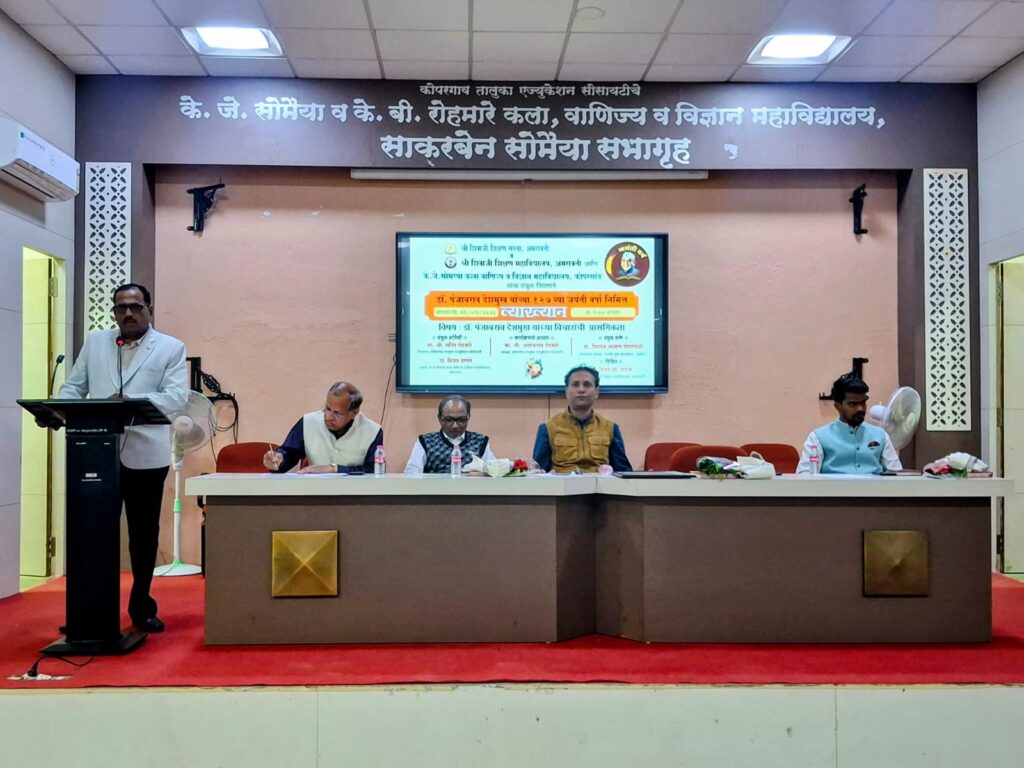 अध्यक्षस्थानावरून बोलताना प्राचार्य डॉ. विजय ठाणगे यांनी डॉ. पंजाबराव देशमुख यांच्या कार्याची ओळख करून देताना को. ता. एज्युकेशन सोसायटीचे संस्थापक अध्यक्ष व कोपरगाव चे माजी आमदार कै. के. बी. रोहमारे आणि डॉ. पंजाबराव देशमुख यांचे ऋणानुबंध होते, म्हणूनच के. बी. रोहमारे यांनी देशमुख यांना कोपरगाव येथे आमंत्रित देखील केले होते, असे सांगितले. अमरावती येथील शिक्षणशास्त्र महाविद्यालयाचे प्राचार्य डॉ. विनय राऊत व डॉ. दोरगावकर यांनीही आपले मनोगत व्यक्त केले.