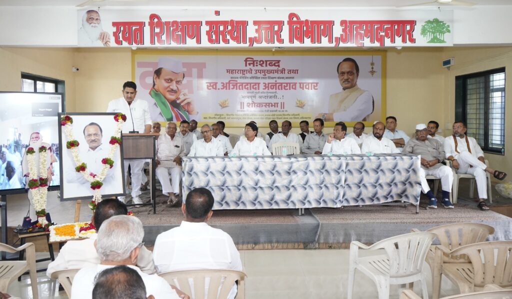 राज्याचे दिवंगत उपमुख्यमंत्री तथा अर्थमंत्री स्व.अजितदादा पवार यांना मंगळवार (दि.०३) रोजी श्रद्धांजली वाहण्यासाठी रयत शिक्षण संस्थेच्या अहिल्यानगर शहरातील उत्तर विभागीय कार्यालयात रयत शिक्षण संस्थेच्या वतीने शोकसभेचे आयोजन करण्यात आले होते. यावेळी उत्तर विभागाचे अध्यक्ष आ.आशुतोष काळे यांनी आपल्या भावना व्यक्त करून श्रद्धांजली वाहिली.