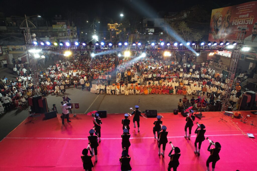 देशात नावलौकिक मिळवलेल्या व प्रथम क्रमांक संपादन केलेल्या संजीवनी सैनिकी स्कूलच्या बँड पथकाने अतिशय मंत्रमुग्ध करत शिवप्रेमी नागरिकांची मने जिंकली.