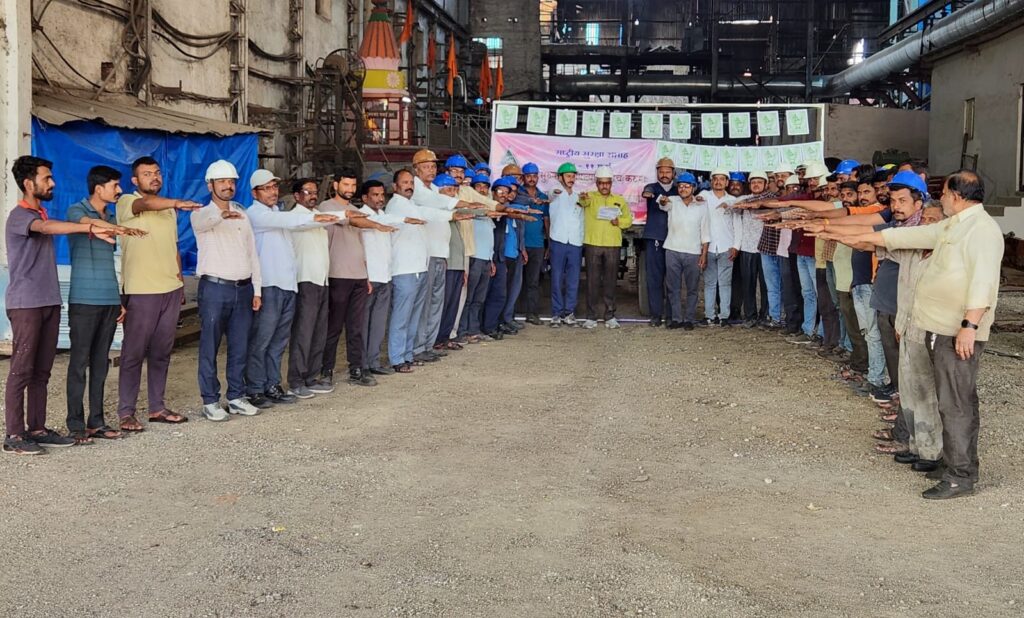 यावेळी कारखान्याचे चिफ इंजिनिअर कम फॅक्टरी मॅनेजर निवृत्ती गांगुर्डे यांनी कामगारांना सुरक्षिततेची शपथ दिली. कारखाना कर्मचाऱ्यांना मार्गदर्शन करतांना ते म्हणाले की, सुरक्षितेच्या सर्व नियमांचे काटेकोर पालन करुन आपण व आपला कारखाना सुरक्षित कसा राहिल यासाठी सर्वांनी प्रयत्न करावेत. निषकाळजीपणा आणि बेजाबदार पणाने केलेले काम स्वतःबरोबरच इतरांनाही हानिकारक ठरू शकते याची जाणीव ठेवावी. कारखान्यात काम करतांना आपल्याला कोणत्याही प्रकारची इजा होणार नाही याची काळजी घेवून सर्व कर्मचाऱ्यांनी आवश्यक त्या सुरक्षा साधनाचा काटेकोरपणाने वापर करुन काळजी घेण्याचे सांगितले.