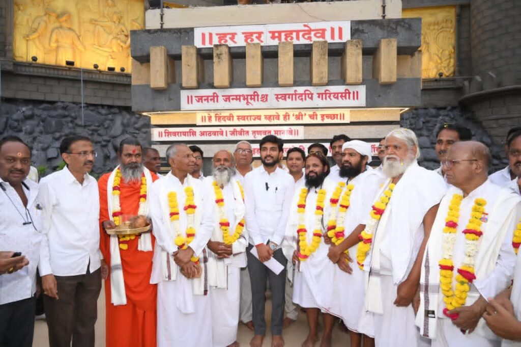 तसेच या मंगल प्रसंगी त्यांच्या हस्ते नर्मदा मातेचे जलपूजन करून संतांवर जेसीबीच्या सहाय्याने पुष्पवृष्टी करण्यात आली. यावेळी आत्मा मालिक ध्यानपीठाचे ज्येष्ठ संत परमानंद महाराज, संत शांतिमाई, स्मृतिमाई, ध्यानीमाई, संत चांगदेव महाराज, विष्णुदास महाराज, प्रेमानंद महाराज,दत्तगिरी महाराज तसेच विश्वात्मक जंगली महाराज आश्रम ट्रस्टचे अध्यक्ष नंदकुमार सूर्यवंशी उपाध्यक्ष बाळासाहेब गोरडे, विश्वस्त प्रदीप भंडारी, प्रकाश गिरमे व अन्य विश्वस्त उपस्थित होते.