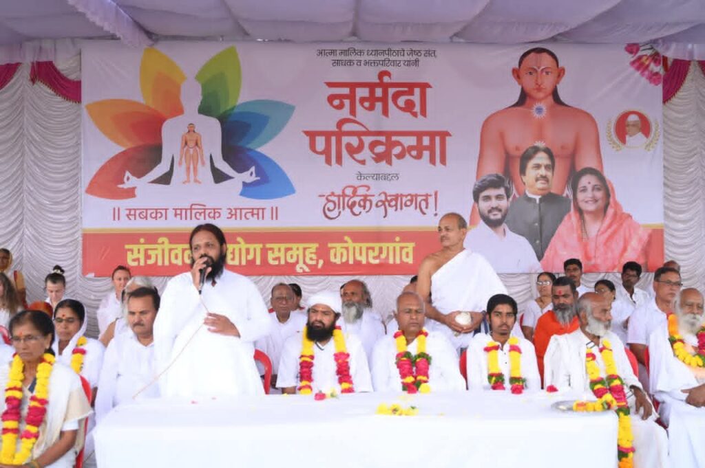 संजीवनी उद्योग समूहाचे अध्यक्ष विवेक कोल्हे यांच्या वतीने प.पु.आत्मा मालिक माऊली व पायी नर्मदा परिक्रमा करणाऱ्या संत निजानंद महाराज,संत अशोक महाराज, संत सार्थकानंद महाराज, अथर्वानंद महाराज, सुनील महाराज, विलास भामरे, सुरेश माळोदे, रामेश्वरी माई , ज्ञानेश्वरी माई, स्वरूपा माई, तपस्विनी माई, शोभा शेलार, ललिता भालरे, सुनीता काळे, आशा सोनवणे, प्रज्ञा मिश्रा, सुमन निकम, निर्मला लाटे, छाया मोटे व वंदना इंगळे यांच्यासह आदींचे व संतांचे पूजन व स्वागत करण्यात आले.