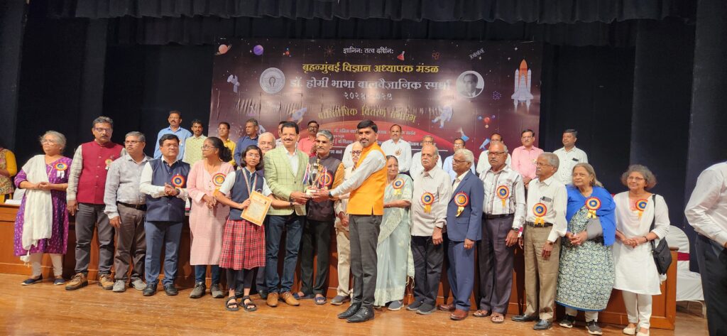 कोपरगाव प्रतिनिधी: मुंबई विज्ञान अध्यापक मंडळ आयोजित डॉ. होमी भाभा बालवैज्ञानिक स्पर्धा परीक्षेमध्ये सर्वोत्कृष्ट कामगिरी करणाऱ्या विद्यालयास दिला जाणारा राज्यस्तरीय ‘विज्ञान जथ्था’ पुरस्काराने आत्मा मालिक सेमी इंग्लिश मिडीयम गुरुकुलला सन्मानित करण्यात आले.